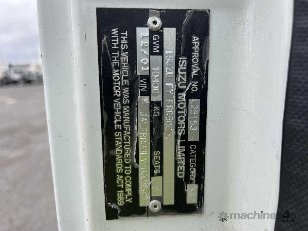 CP: 12/2001,Isuzu,FRR 500A,Table Top,Manual,Leaf Spring ,6 Cyl,Diesel Turbo,6 Gears,128313 (Kms. Showing on Odometer),Hourmeter not visible,Colour: White,Rego. No: NP(SB64KH), Unregistered SA,VIN: JALFRR33LY7000858,GVM: 10400,Sold with No Plates