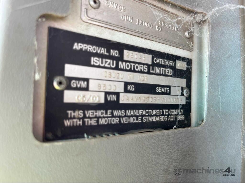 CP: 05/2001,Isuzu,NQR 450 Long,Table Top (Day Cab),Manual,Leaf Spring Suspension ,4HE1-XS,4 Cyl,Diesel,6 Gears,294331 (Kms. Showing on Odometer),Hourmeter not visible,Colour: White,Rego. No: AN52MT NSW,Rego expiry: 04/12/2026,VIN: JAAN1R70RY7100676,Length: 8 m,GVM: 8500,GCM: 12000,Sold with No Plates