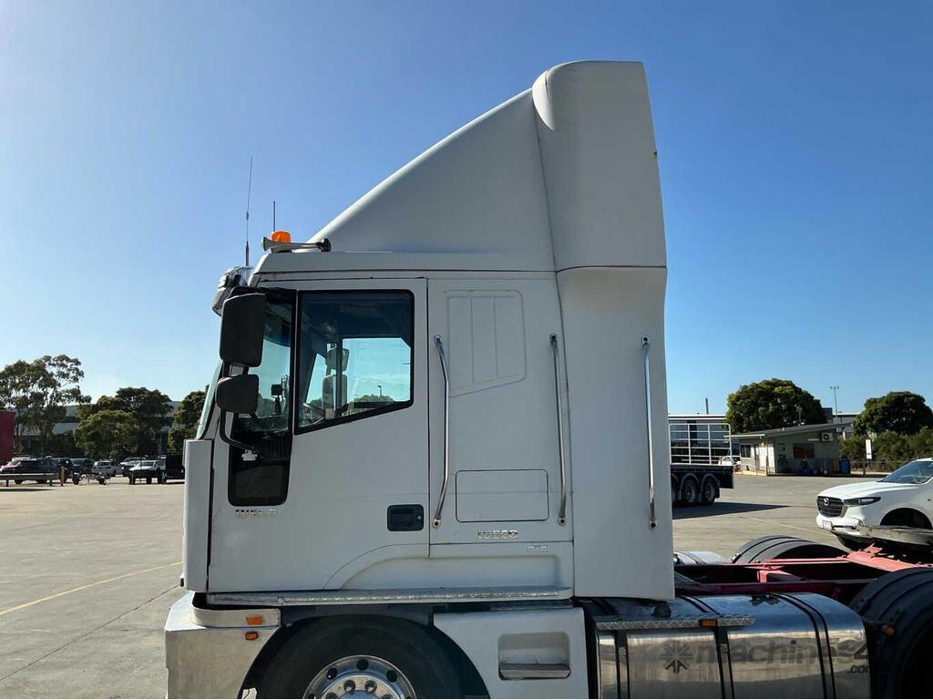 CP: 08/2001,Iveco,Eurotech MP4700,Prime Mover,Manual,Airbag,Engine #: 06R0617076,Detroit Series 60,6 Cyl,Diesel,18 Gears,238864 (Kms. Showing on Odometer),Hourmeter not visible,Colour: White,Rego. No: XW62CJ VIC,VIN: 6F2VF47001DH30112,Key No: 53,Length: 7.6 undefined,GVM: 24500,GCM: 75000,Sold with No Plates,Key No: 53