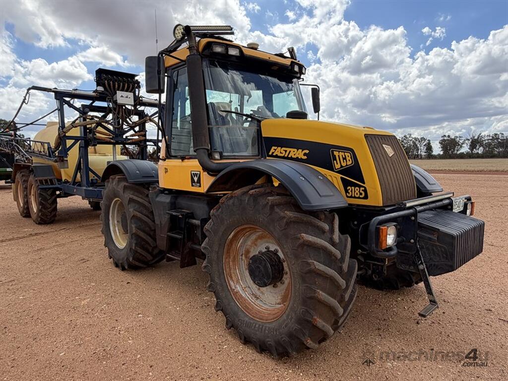 2001 JCB 3185 TRACTOR, S/N: 4558, showing 9659 hrs (still in use), 5.9L Cummins, 36 speed transmission, 4WD, 3 remotes, PTO, front weight pack, LED lights, NOTE: guiadance equipment and spray controller not included, runs and drives well, located Trundle NSW