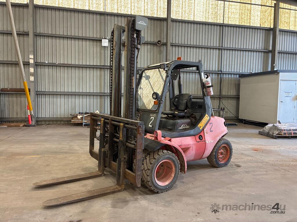 CP: 01/2001,Built: 01/2001,Linde,H45-600,Diesel Forklift,Engine #: ,4 Cyl,Diesel,Direct & Multi-Point Injection,Odometer not visible,7070 (Hrs. Showing on Hour meter),Colour: Red,Unregistered QLD,Serial No: H2X352M01465,Sold with No Plates