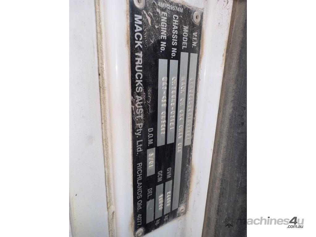 CP: 03/2001,Mack,CH,Cab Chassis,Manual,airbags,6 Cyl,Diesel,Odometer not visible,Hourmeter not visible,Colour: White,Rego. No: WATER WA,VIN: 6FMJ26E54A1B07121,Sold with No Plates,WOVR Status: WOVR N/A,Incident Type: Not Applicable