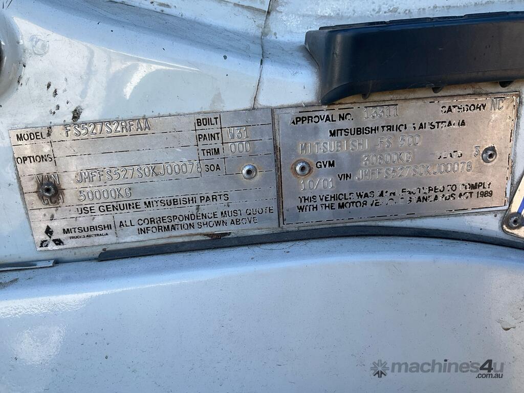 CP: 10/2001,Mitsubishi Fuso,FS500,3/4 Cab Table Top,Manual,Spring,6 Cyl,Diesel,Turbo,656662 (Kms. Showing on Odometer),Hourmeter not visible,Colour: White,Rego. No: NP(XN79TS), Unregistered NSW,VIN: JMFFS527S0KJ00078,Length: 11.8 M,GVM: 50000,GCM: 30800,Sold with No Plates,WOVR Status: Repairable Write-Off,Incident Type: Malicious,Impact