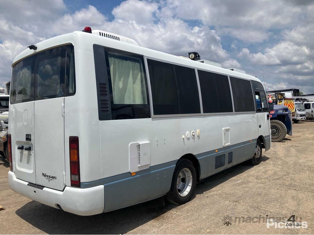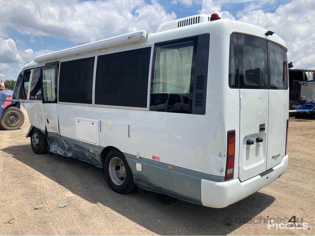 CP: CIRCA 2001,Nissan,Civilian,Motorhome,Manual,Spring,6 Cyl,Diesel,Odometer not visible,Hourmeter not visible,Colour: White,Rego. No: NP(408CR3), Unregistered QLD,VIN: JN1UBHW41A0301008,Sold with No Plates,WOVR Status: WOVR N/A,Incident Type: Impact