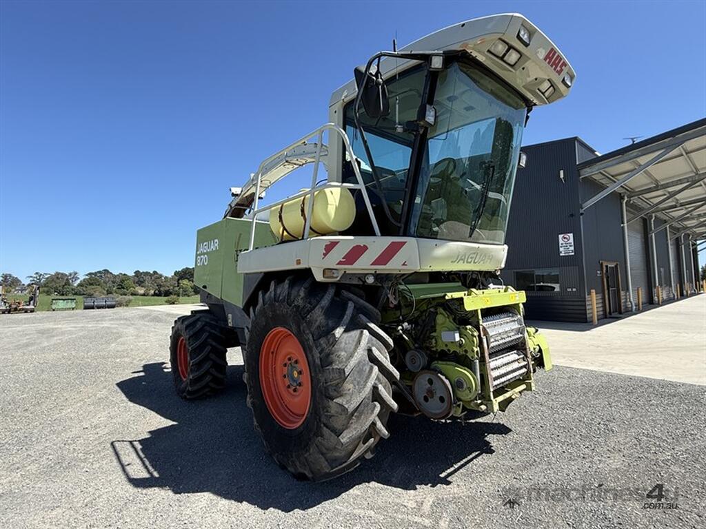 2002 CLAAS JAGUAR 870 FORAGE HARVESTER. Serial no. 49201757. 7881 engine hours and 4897 forage hours. Front tyres 650/75R32 and rear tyres 540/65R24. Located Moss Vale, NSW