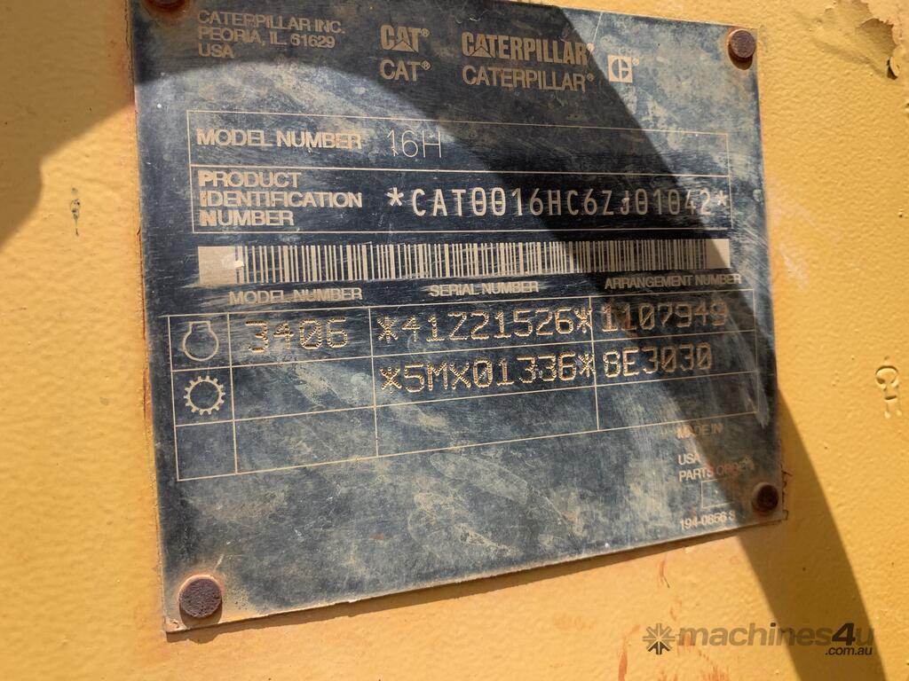 CP: CIRCA 2002,Caterpillar,16H,Motor Grader,6 Cyl,Diesel,Odometer not visible,Hourmeter not visible,Colour: Yellow,Unregistered,VIN: CAT0016HC6ZJ01042,Serial No: CAT0016HC6ZJ01042,Sold with No Plates