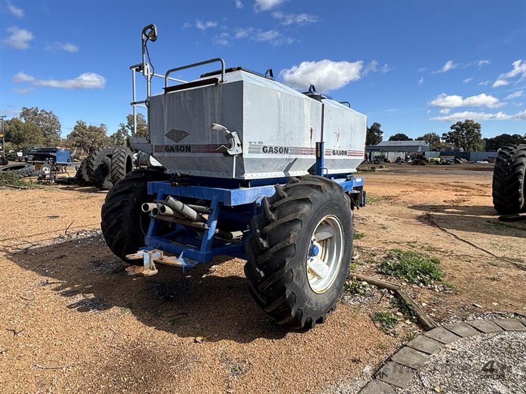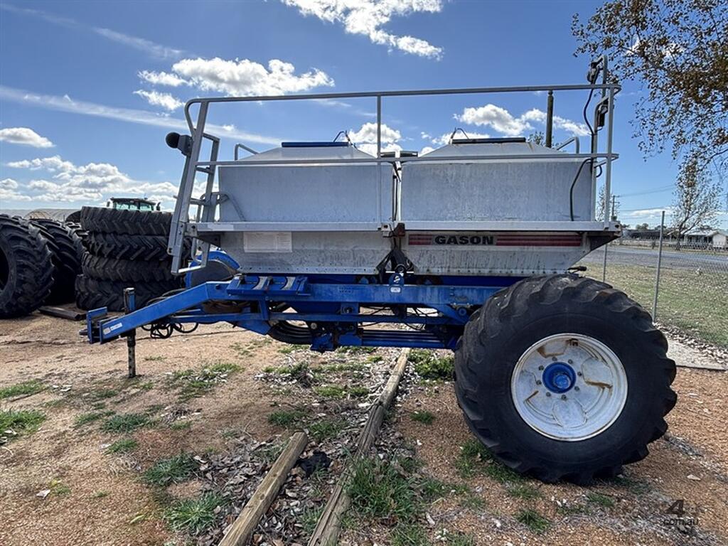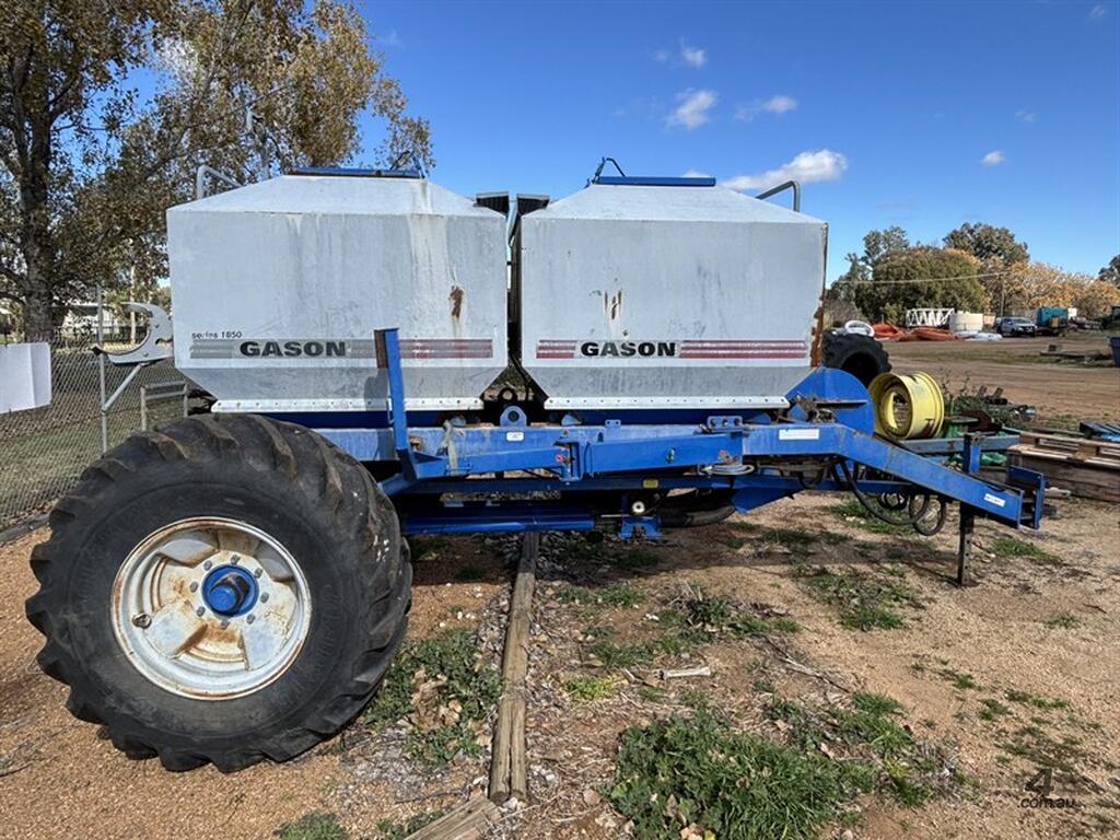 2002 GASON 1850FT2 AIR SEEDER CART, S/N: 1850FT1, approx 4t capacity, 2 bins, tow between with rear swinging drawbar, hydraulic auger and Farmscan monitor included, located Dubbo, available through MRE Auctions, contact Jono