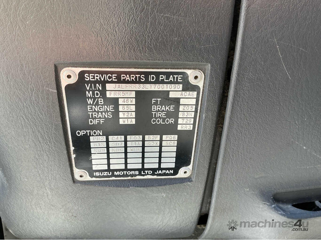 CP: 09/2002,Isuzu,FRR500,Pantech,Manual,Spring,Sitec,6 Cyl,Diesel,6 Gears,621403 (Kms. Showing on Odometer),6789 (Hrs. Showing on Hour meter),Colour: White,Rego. No: NP(076HC0), Unregistered QLD,VIN: JALFRR33LY7001090,GVM: 10400,GCM: 14890,Sold with No Plates