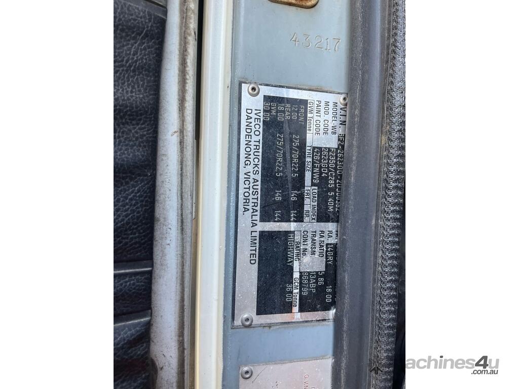 CP: 06/2002,Iveco,ACCO,Dual Axle Tilting,Automatic,Airbag,Diesel,Turbo,529156 (Kms. Showing on Odometer),Hourmeter not visible,Colour: White,Unregistered,VIN: 6F22623002DJ00382,GVM: 30000,Sold with No Plates,WOVR Status: WOVR N/A,Incident Type: Impact