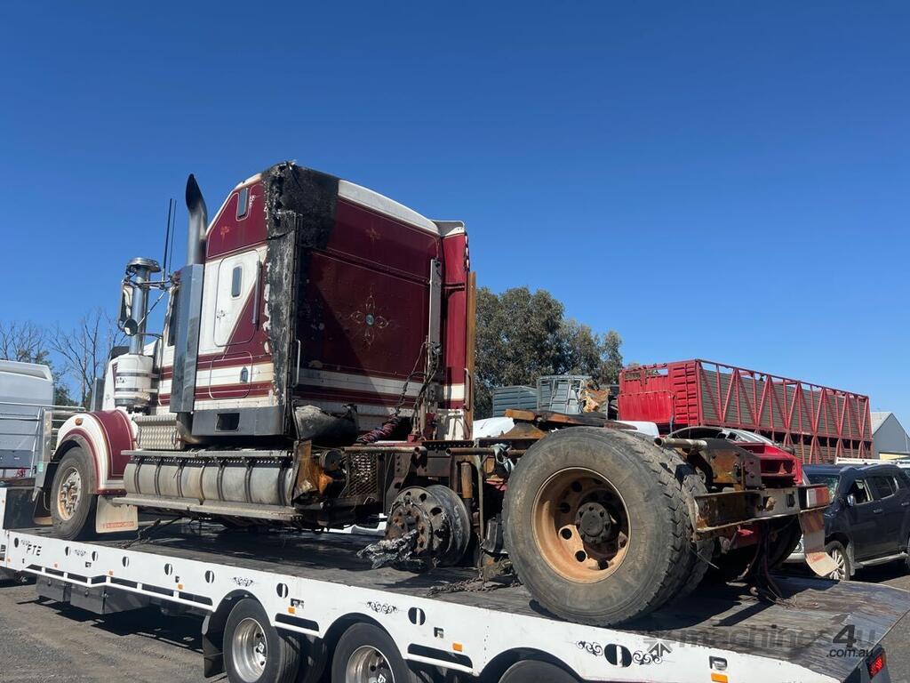 CP: 09/2002,Kenworth,T904,Prime Mover,Manual,Airbag Suspension,6 Cyl,Diesel,18 Gears,Odometer not visible,Hourmeter not visible,Colour: White,Unregistered,VIN: 6F50000002A423218,Length: 8.5 M,GVM: 26000,Sold with No Plates,WOVR Status: WOVR N/A,Incident Type: Fire
