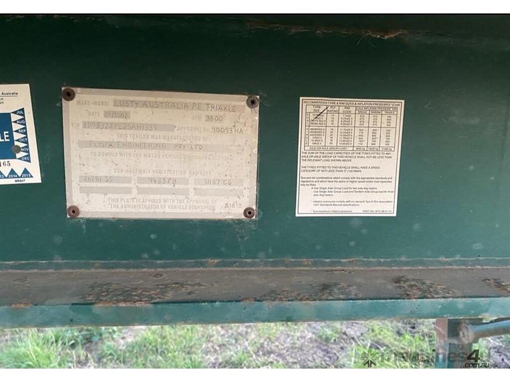 2002 Lusty Australia Tri Axle Lead Trailer Tipper. Tip over axle, not a slide trailer. VIN: 6D9332JPE2SAH1339. Located Wee Waa, NSW. Available at MRE Auctions.