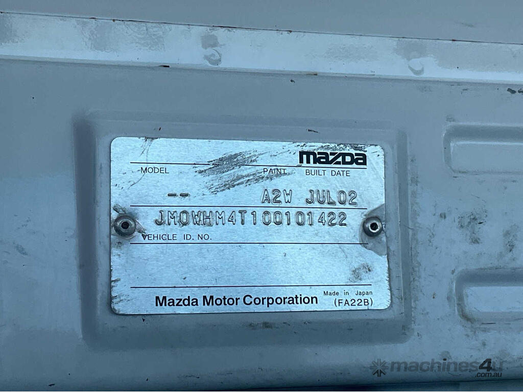 CP: 08/2002,Built: 07/2002,Mazda,T4600D,Tipper Day Cab,Manual,Spring,4 Cyl,Diesel Turbo,5 Gears,265509 (Kms. Showing on Odometer),Hourmeter not visible,Colour: White,Rego. No: YJX276 NSW,Rego expiry: 15/03/2026,VIN: JM0WHM4T,Key No: 485S,Length: 5.6 m,GVM: 4495,Sold with No Plates,Key No: 485S