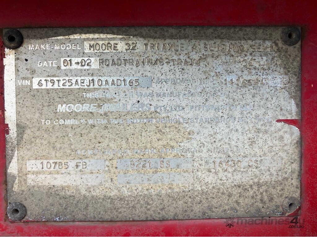 CP: 01/2002,Moore,Roadtrain,Tri Axle Bulk Scrap Tipper A+B Trailer Combination,Hubometer not visible,Colour: Blue,Unregistered,VIN: 6T9T25AEJ10AAD165,Sold with No Plates