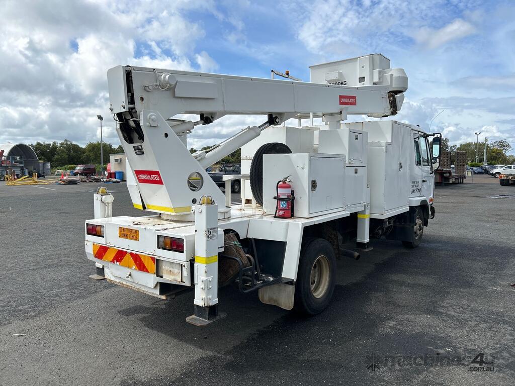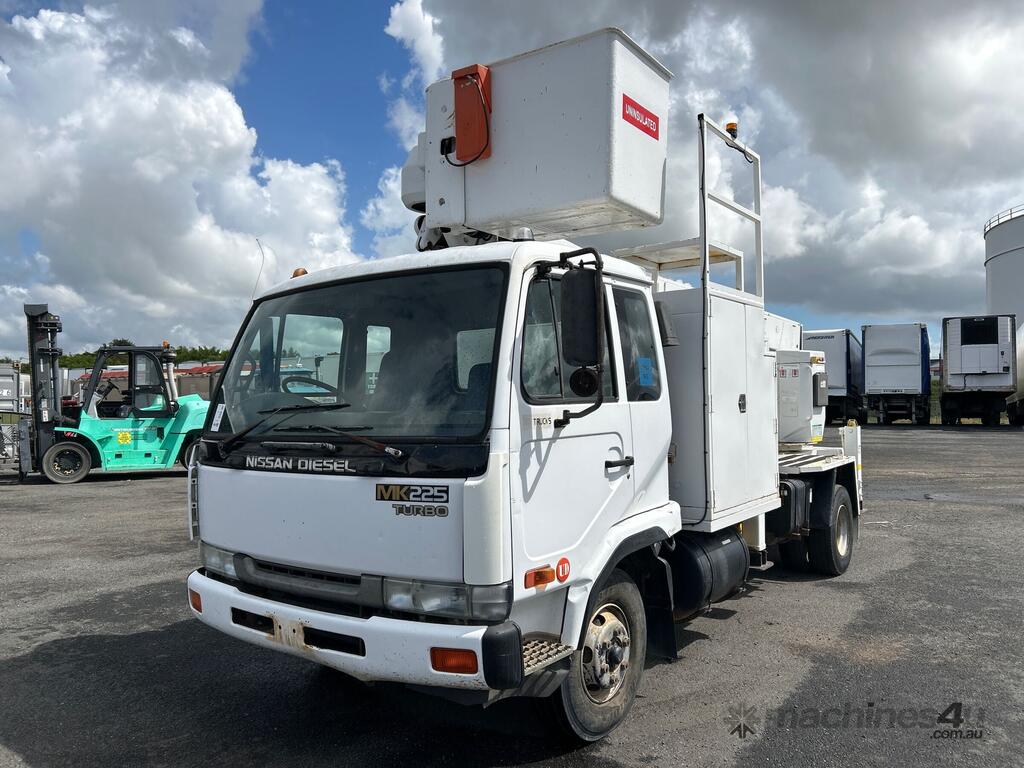 CP: 12/2002,Nissan Diesel,MKB210,EWP,Manual,Spring,Diesel,145177 (Kms. Showing on Odometer),Hourmeter not visible,Colour: White,Unregistered,VIN: JNBMKB21000F04362,Key No: 58,GVM: 10400,Sold with No Plates,Key No: 58
