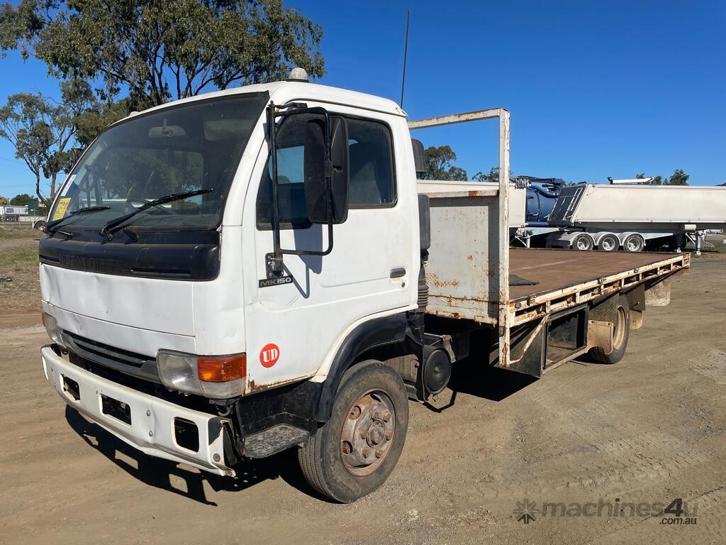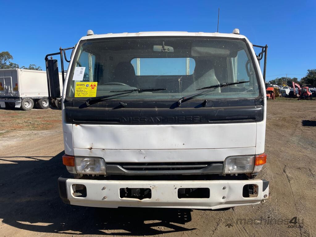 CP: CIRCA 2002,Nissan UD,MK150,Table Top,Manual,Spring Suspension,Engine #: FD46000307A,4 Cyl,Diesel,456431 (Kms. Showing on Odometer),Hourmeter not visible,Colour: White,Rego. No: NP(584WPX), Unregistered QLD,VIN: JNBMKA12100E00399,Length: 7 m,GVM: 9,Sold with No Plates,WOVR Status: WOVR N/A,Incident Type: Impact