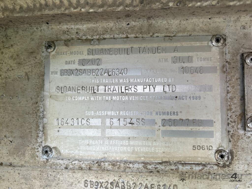 CP: 08/2002,Built: 08/2002,Sloanbuilt Trailers,Tandem Axle Tipping Trailer ,B-Double Combination Set,Hubometer not visible,Colour: White,Unregistered,VIN: 6B9X2SABB22AE6340,Sold with No Plates