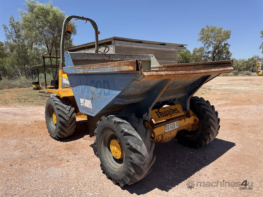2002 THWAITES 6-Ton Dump Truck. Perkins diesel engine, 6-ton dump truck runs well. Equipped with a forward-tipping bin, 4WD, four-speed gearbox. Features include ROPS bar with indicators and flashing beacon. Compact and manoeuvrable, measuring 4.3 metres in length and 2.35 metres in width. Versatile tipper ideal for construction or rural work. Please note this registered vehicle will be, sold unregistered and VIN plate is illegible. Located Wilcannia, NSW.