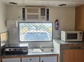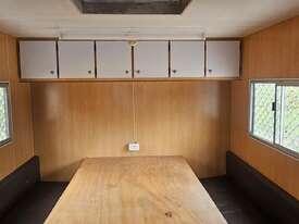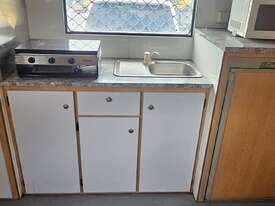 2002 Model, Bogie Axle, ATM 3000kg, Tare 1960kg, Side Awning, Storage in Rear, Air Con, Microwave, Stove, Fridge, Cupboards, Table and Bench Seats.