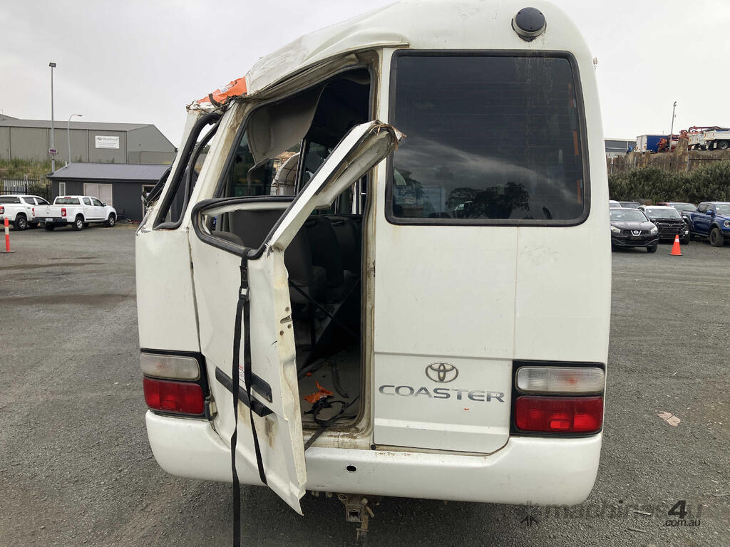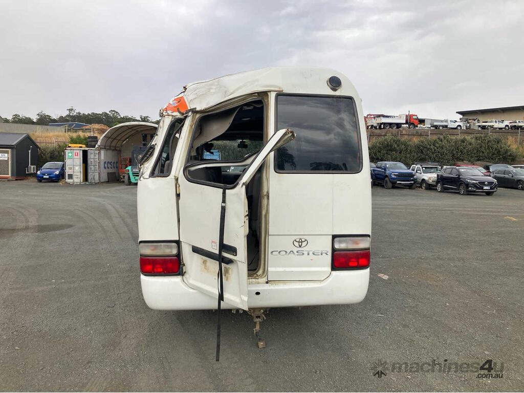 CP: 01/2002,Built: 11/2001,Toyota,Coaster 50 Series,Bus,Manual,Leaf Spring Suspension ,6 Cyl,Diesel,5 Gears,310227 (Kms. Showing on Odometer),Hourmeter not visible,Colour: White,Rego. No: NP(XT85CH), Unregistered TAS,VIN: JTGFB89,Length: 6.8 m,Sold with No Plates,WOVR Status: WOVR N/A,Incident Type: Impact