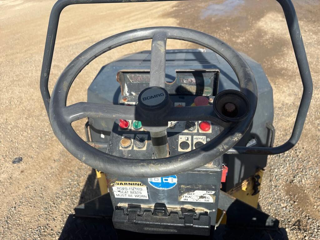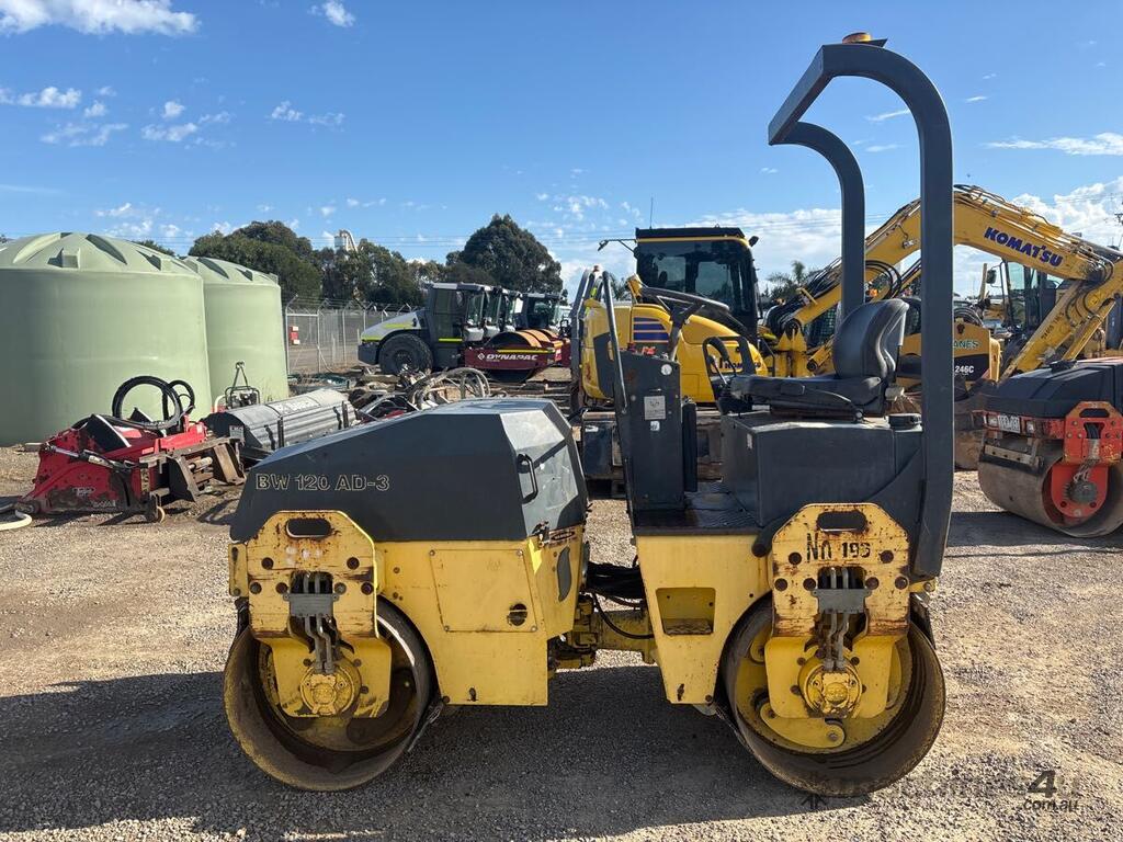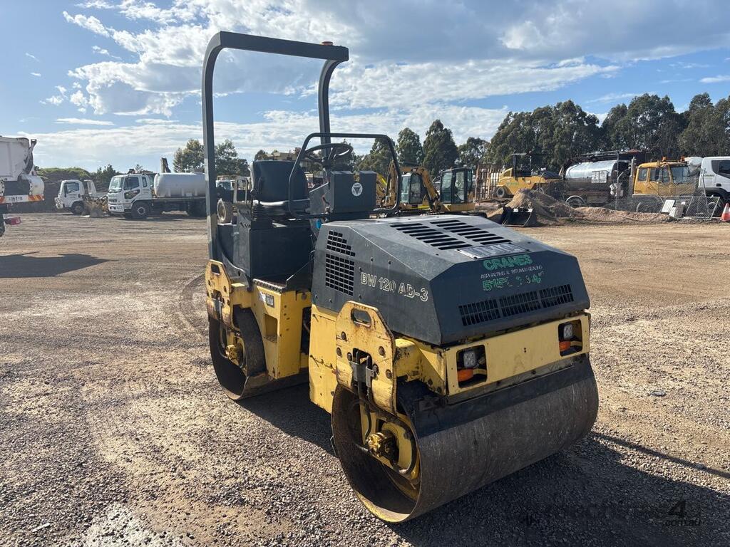 CP: CIRCA 2003,Bomag,BW120AD-3,Articulated Double Drum Roller,Engine #: 00830183,2 Cyl,Diesel,Odometer not visible,803 (Hrs. Showing on Hour meter),Colour: White,Rego. No: NP(XNT104), Unregistered TAS,Serial No: 42,ROPS No: undefined,Sold with No Plates