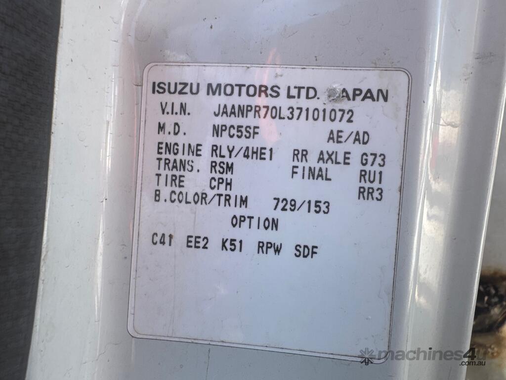 CP: 05/2003,Isuzu,N3 NPR,Tipper,Manual,spring,4 Cyl,Diesel,Odometer not visible,Hourmeter not visible,Colour: White,Rego. No: NP(990WBU), Unregistered QLD,VIN: JAANPR70L37101072,GVM: 6500,GCM: 10000,Sold with No Plates,WOVR Status: WOVR N/A,Incident Type: Impact