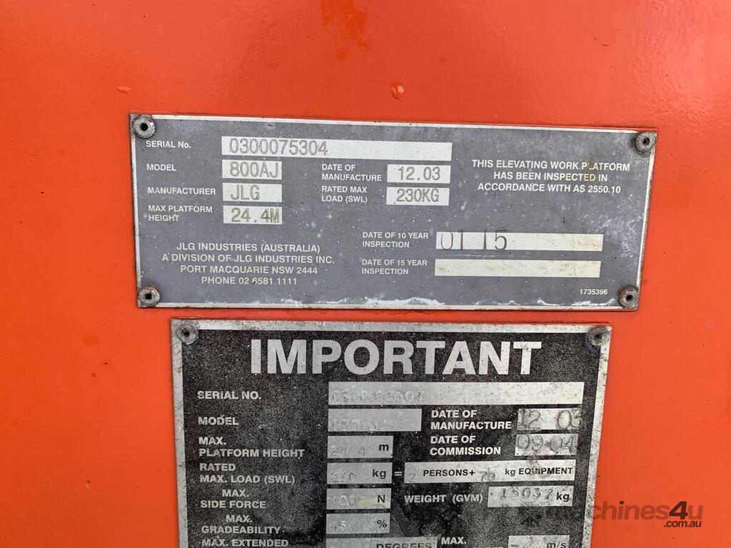 CP: CIRCA 2003,Built: 12/2003,JLG,800AJ,Elevated Work Platform,Diesel,Odometer not visible,4984 (Hrs. Showing on Hour meter),Colour: Orange,Unregistered,Serial No: ,Sold with No Plates