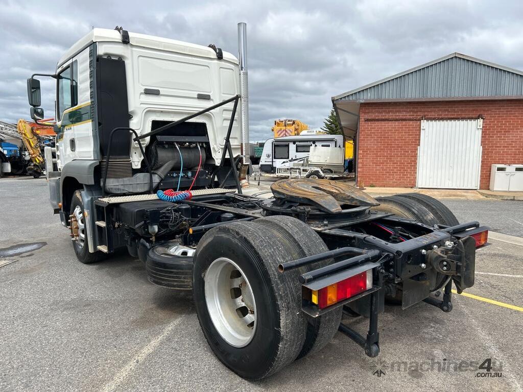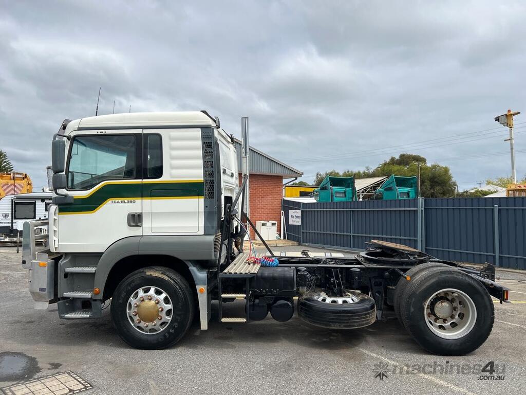 CP: 07/2003,MAN,TGA 18.360,Prime Mover,Manual,Airbag,Diesel Turbo,8 Gears,780614 (Kms. Showing on Odometer),Hourmeter not visible,Colour: White,Unregistered,VIN: WMAH05ZZZ3M370334,Key No: P95,GVM: 18000,GCM: 40000,Sold with No Plates,Key No: P95
