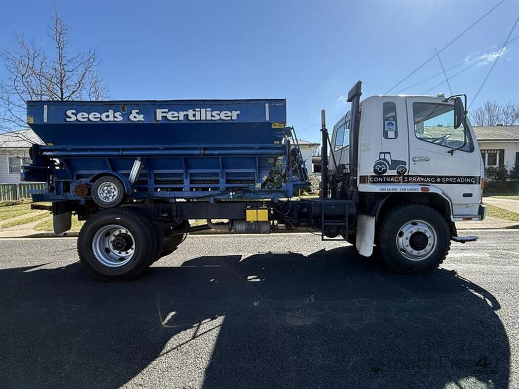 2003 MITSUBISHI FM600 + MARSHALL MULTISPREAD 880TM 8000KGS SPREADER. VIN. JLFFM65FH0KK00045. GVM 16000kgs. 355,403kms and 5890 hours. 6 speed manual transmission. 3 seater. Truck presents very well for its age. Trimble Ez-Guide 250 GPS. 8000kg capacity. Located Orange, NSW