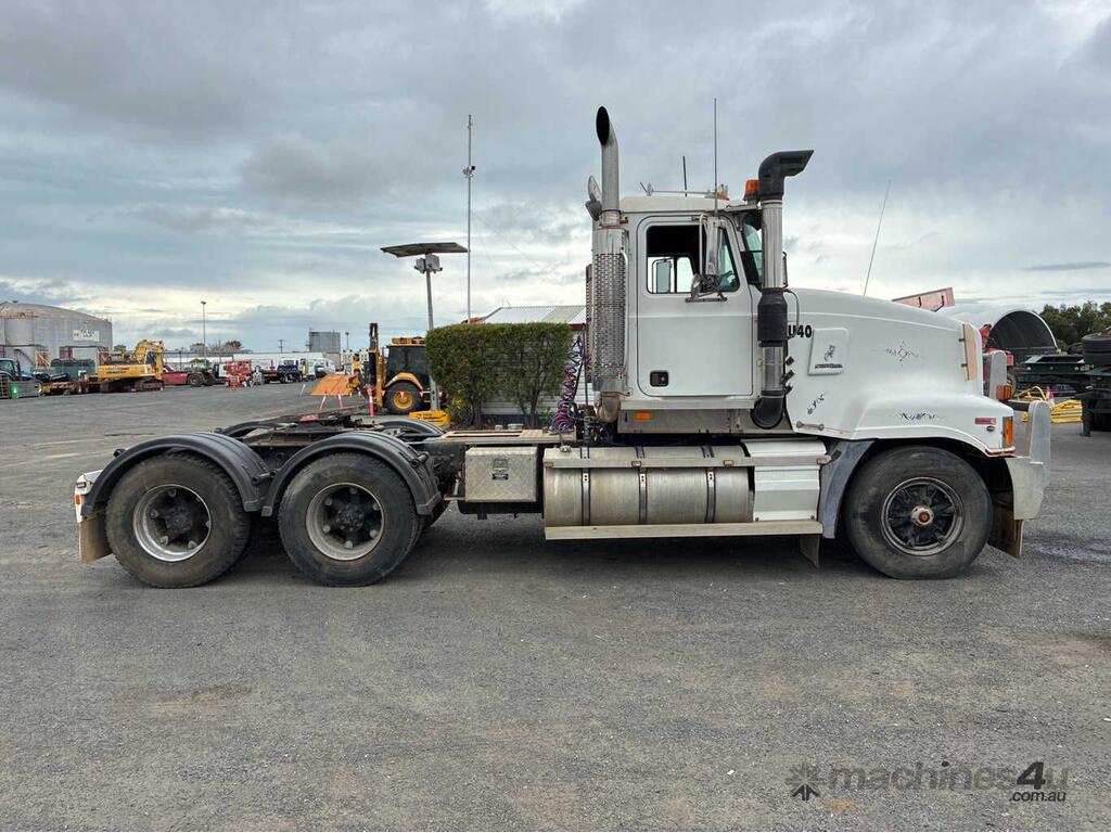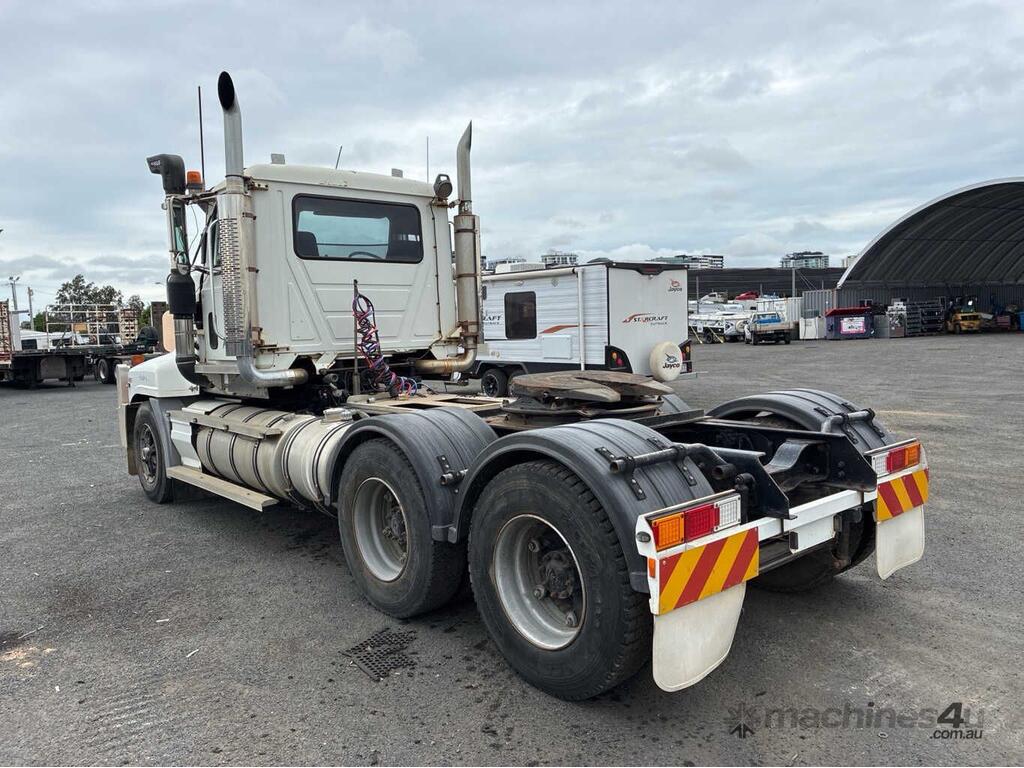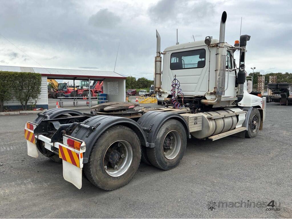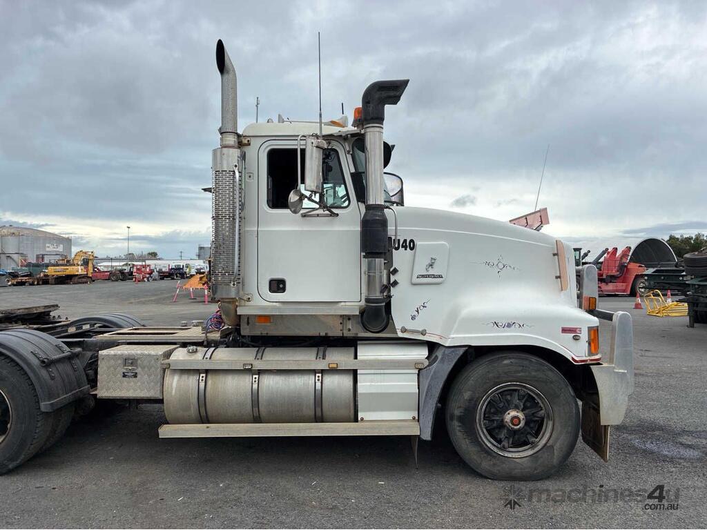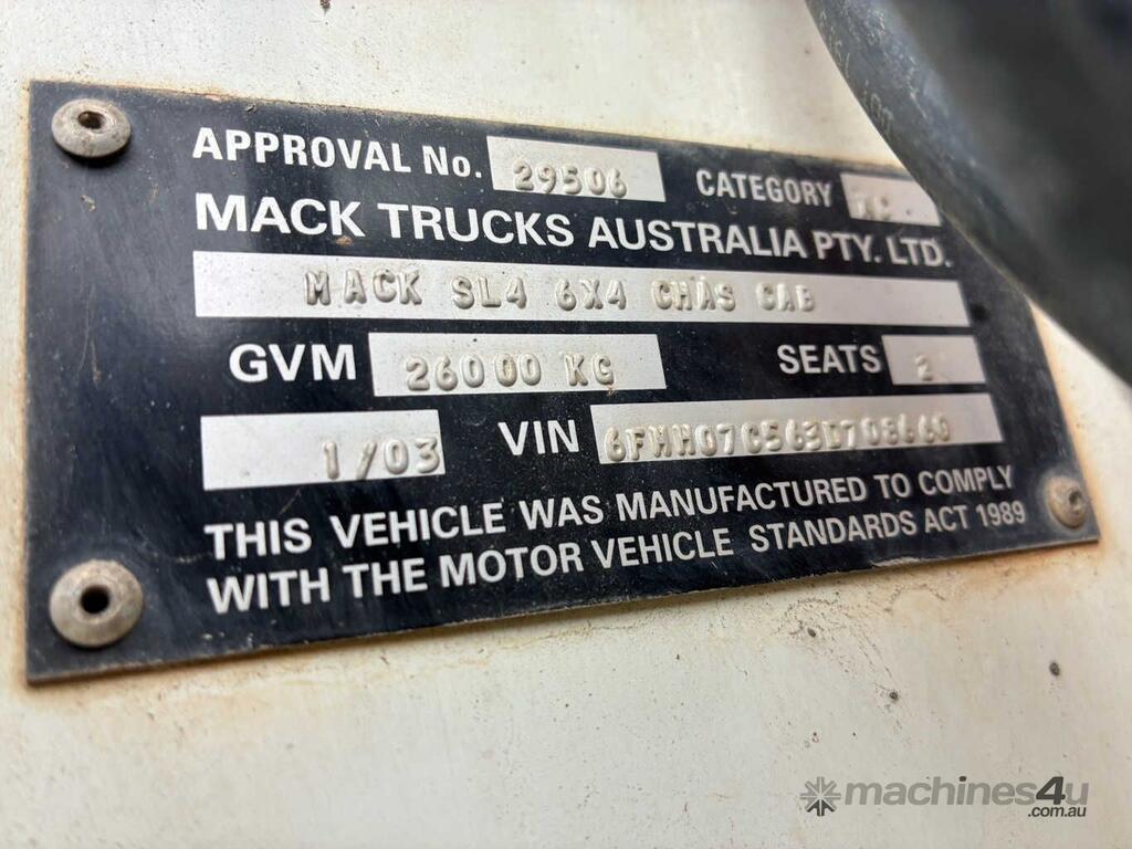 CP: 01/2003,Mack,SL4,Prime Mover,Manual,Airbag,6 Cyl,Diesel,556443 (Kms. Showing on Odometer),12423 (Hrs. Showing on Hour meter),Colour: White,Unregistered,VIN: 6FMH07C563D708660,Key No: 392,GVM: 26000,GCM: 90500,Sold with No Plates,Key No: 392
