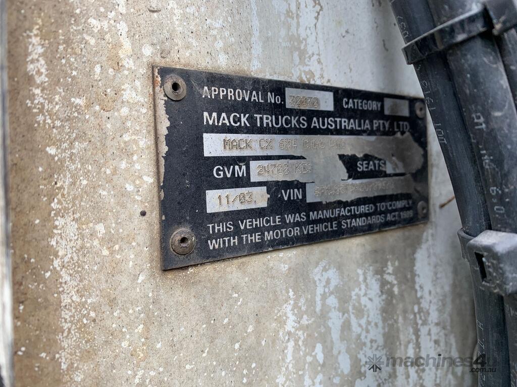 CP: 11/2003,Mack,Vision CX,Tipper,Manual,airbags,6 Cyl,Diesel,Odometer not visible,Hourmeter not visible,Colour: White,Rego. No: NP(XB18XU), Unregistered QLD,VIN: 6FMJ03F563D709678,GVM: 24700,GCM: 70000,Sold with No Plates,WOVR Status: WOVR N/A,Incident Type: Impact
