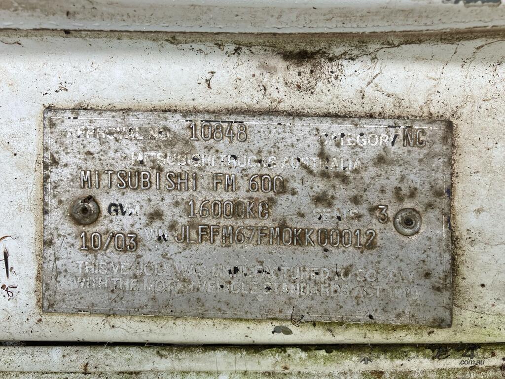 CP: 10/2003,Mitsubishi,Fighter,Manual,Leaf Spring,6 Cyl,Diesel,8 Gears,711325 (Kms. Showing on Odometer),Hourmeter not visible,Colour: White,Rego. No: XN09UL NSW,VIN: JLFFM67FM0KK00012,Length: 10.55 undefined,GVM: 22500,GCM: 32000,Sold with No Plates,WOVR Status: Statutory Write-Off,Incident Type: Water