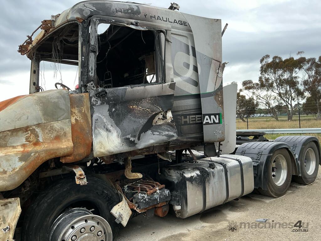 CP: 03/2003,Scania,164L,Prime Mover,Manual,Diesel,Odometer not visible,Hourmeter not visible,Colour: Burnt,Rego. No: NP(1SHE), Unregistered VIC,VIN: XLET6X6,Length: 24 ft,Sold with No Plates,WOVR Status: WOVR N/A,Incident Type: Fire
