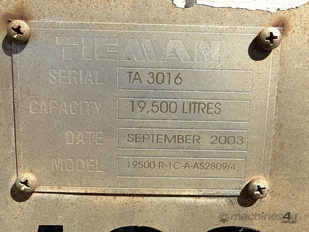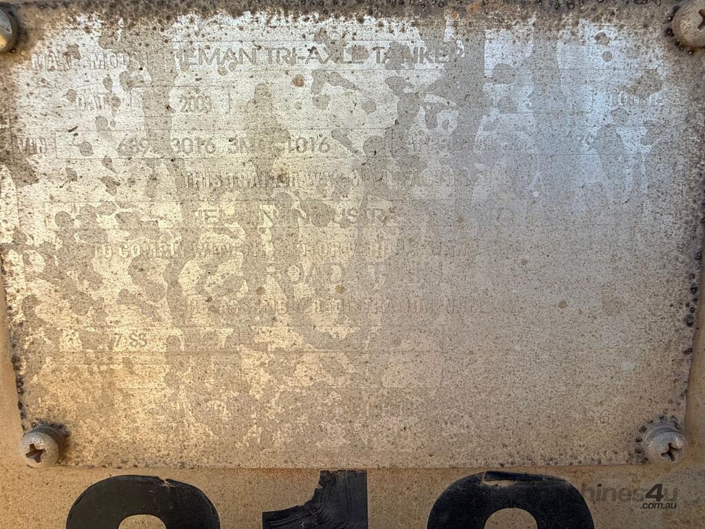 CP: CIRCA 2003,Tieman,Tri Axle Liquid Tanker Trailer,649004 (Kms. Showing on Hubometer),Rego. No: SY36CF SA,VIN: 6B9TA30163MAC1016,Sold with No Plates
