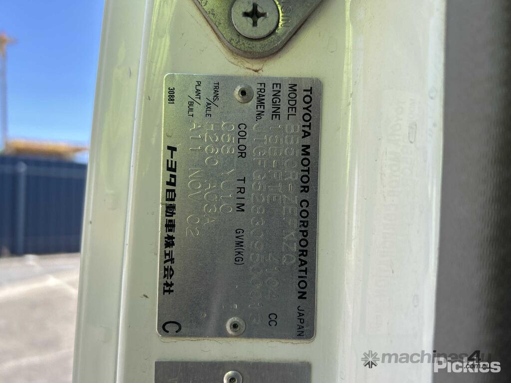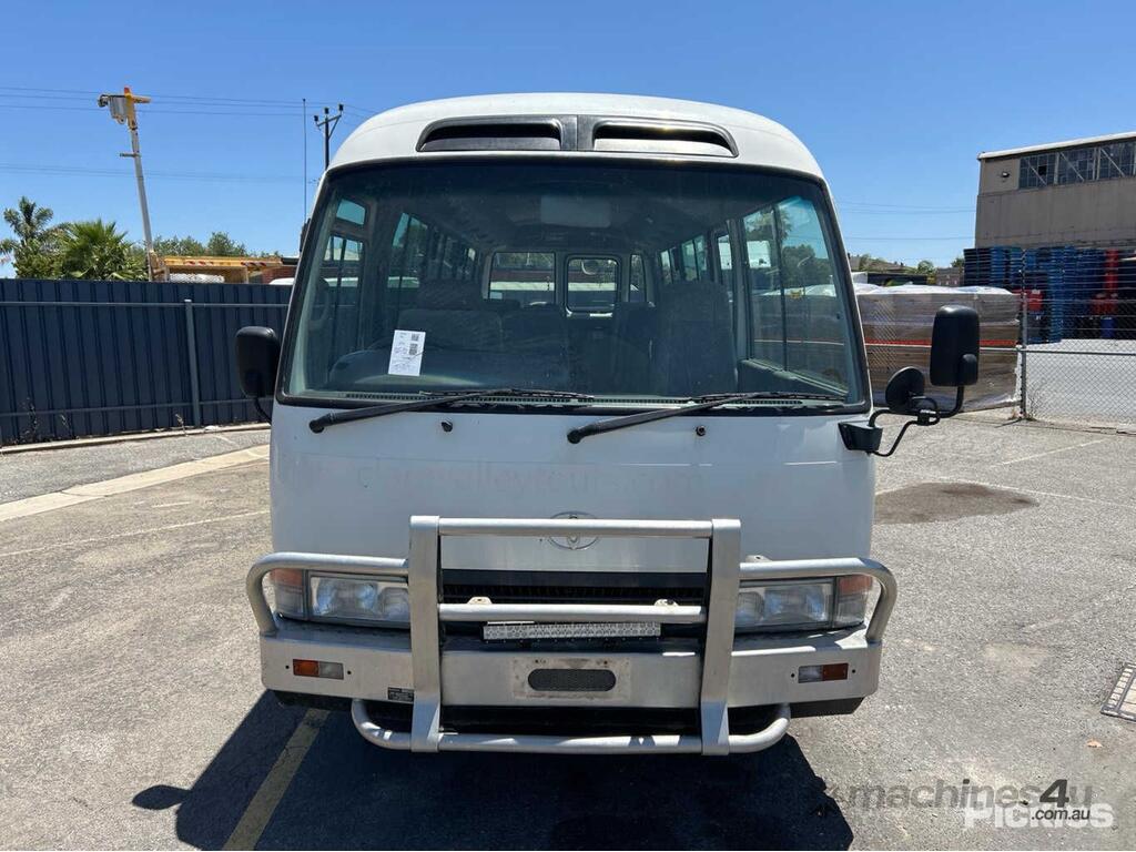 CP: 01/2003,Toyota,Coaster 50 Series,Bus,Manual,Leaf Spring,Engine #: 15B1715927,4 Cyl,Diesel Turbo,6 Gears,396119 (Kms. Showing on Odometer),Hourmeter not visible,Colour: White,Rego. No: XJT031 SA,VIN: JTGFG13,Key No: P189,Length: 7.4 m,GVM: 4990,Sold with No Plates,Key No: P189