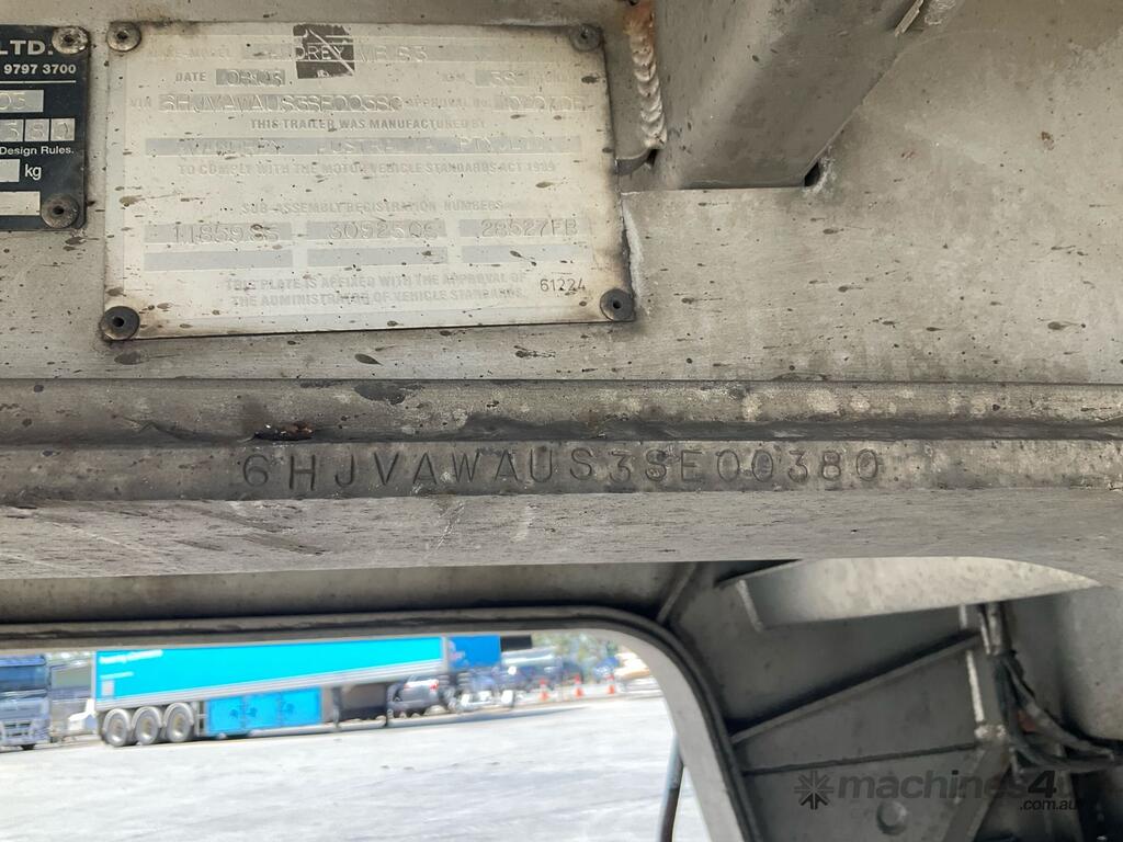 CP: 08/2003,Vawdrey,VB S3,Tri Axle Drop Deck Curtainsider A Trailer,Hubometer not visible,Colour: Blue,Rego. No: NP(YV05DK), Unregistered,VIN: 6HJVAWAUS3SE00380,Sold with No Plates