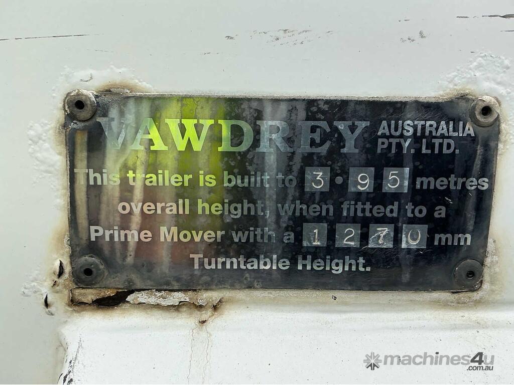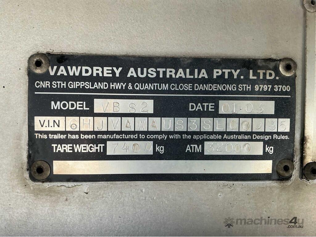 CP: 01/2003,Vawdrey,VBS2,Tandem Axle Pantech Trailer,59060 (Kms. Showing on Hubometer),Colour: White,Unregistered,VIN: 6HJVAWAUS3SE00035,Sold with No Plates