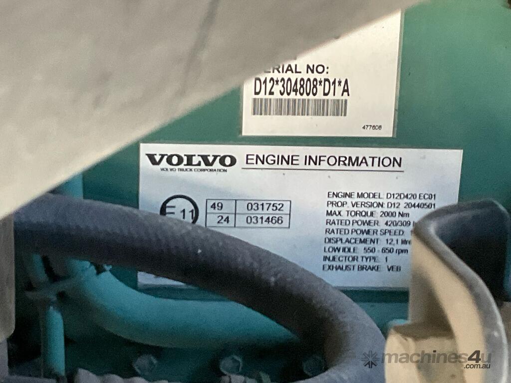 CP: 01/2003,Volvo,FM420,Prime Mover,Automatic,Air Bag Suspension,Engine #: 304808,Volvo D12 ,6 Cyl,Diesel,842556 (Kms. Showing on Odometer),20801 (Hrs. Showing on Hour meter),Colour: White,Unregistered,VIN: YV5J4CFD82D123652,Key No: 300,GVM: 27500,GCM: 45000,Sold with No Plates,Key No: 300