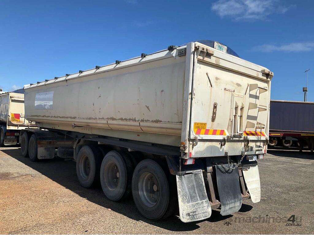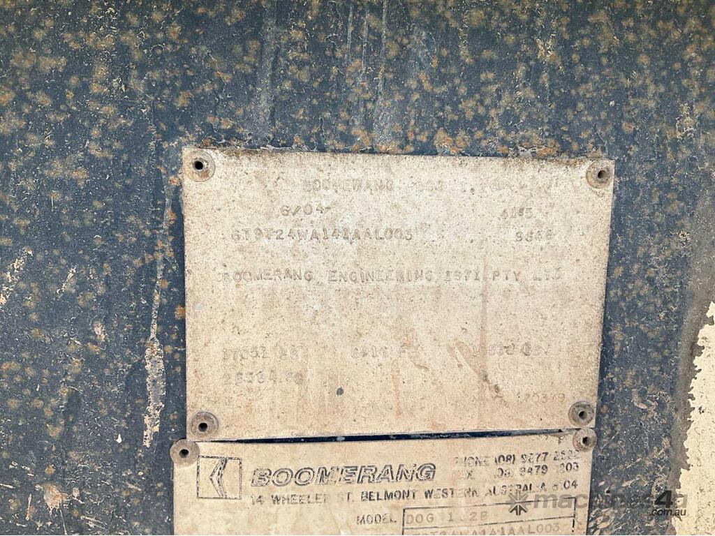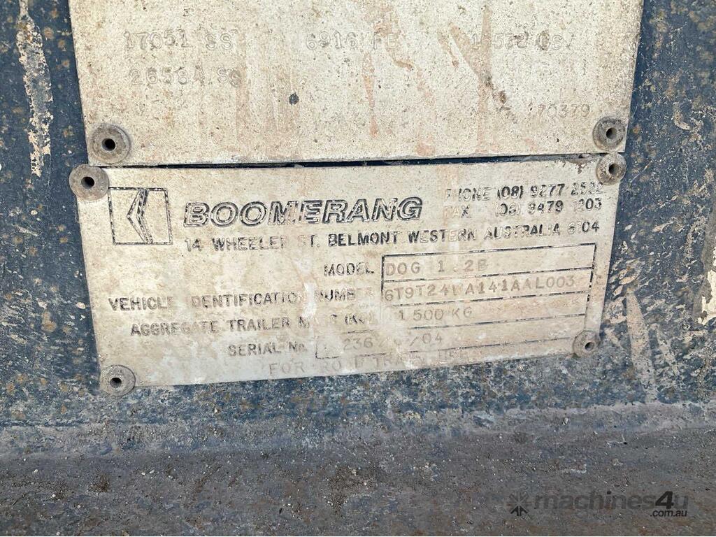 CP: 06/2004,Built: 06/2004,Boomerang,Quin Axle Dog Tipper Trailer,Hubometer not visible,Colour: White,Rego. No: NP(1TSC972), Unregistered WA,VIN: 6T9T24WA141AAL003,Sold with No Plates