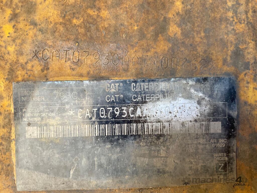 CP: 01/2004,Built: 01/2004,Caterpillar,793C,Off Highway Rear Dump Truck,69 Ltr,16 Cyl,Diesel Turbo,Odometer not visible,103591 (Hrs. Showing on Hour meter),Colour: Yellow,Unregistered,Chassis: CAT0793CAATY00762,Serial No: ATY00762,Sold with No Plates