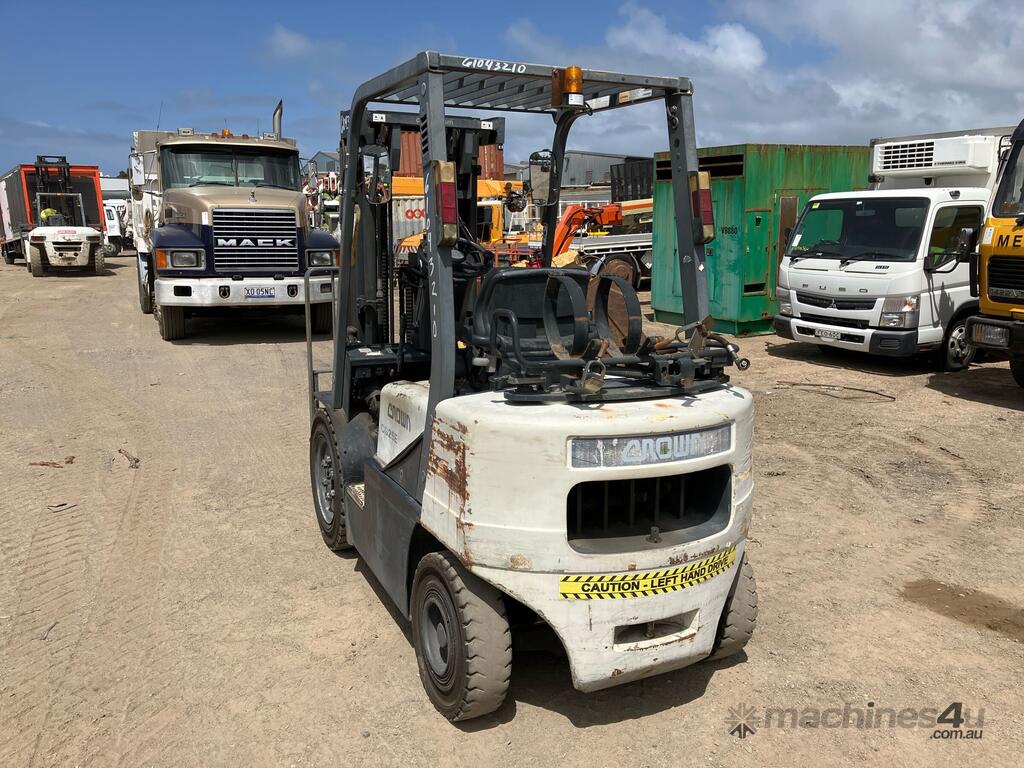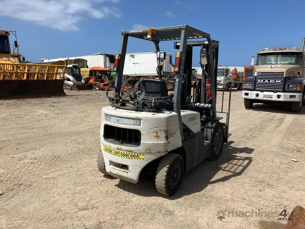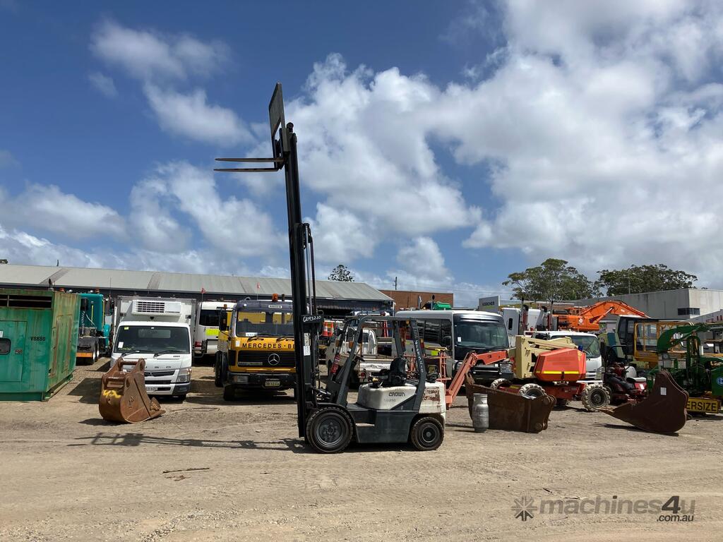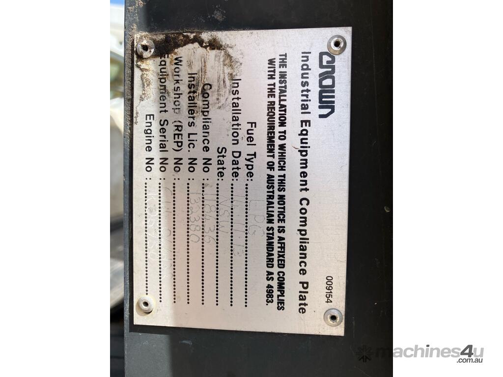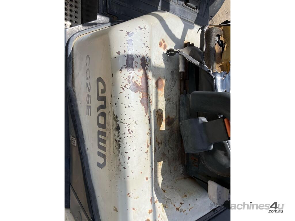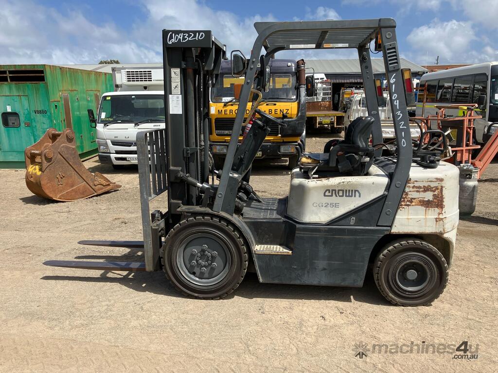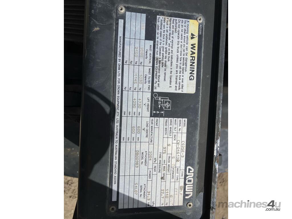 CP: CIRCA 2004,Crown,CG25E-3,4 Cyl,LPG only,Odometer not visible,7022 (Hrs. Showing on Hour meter),Colour: White,Rego. No: NP(95722D), Unregistered NSW,Serial No: CW-04613R,Sold with No Plates