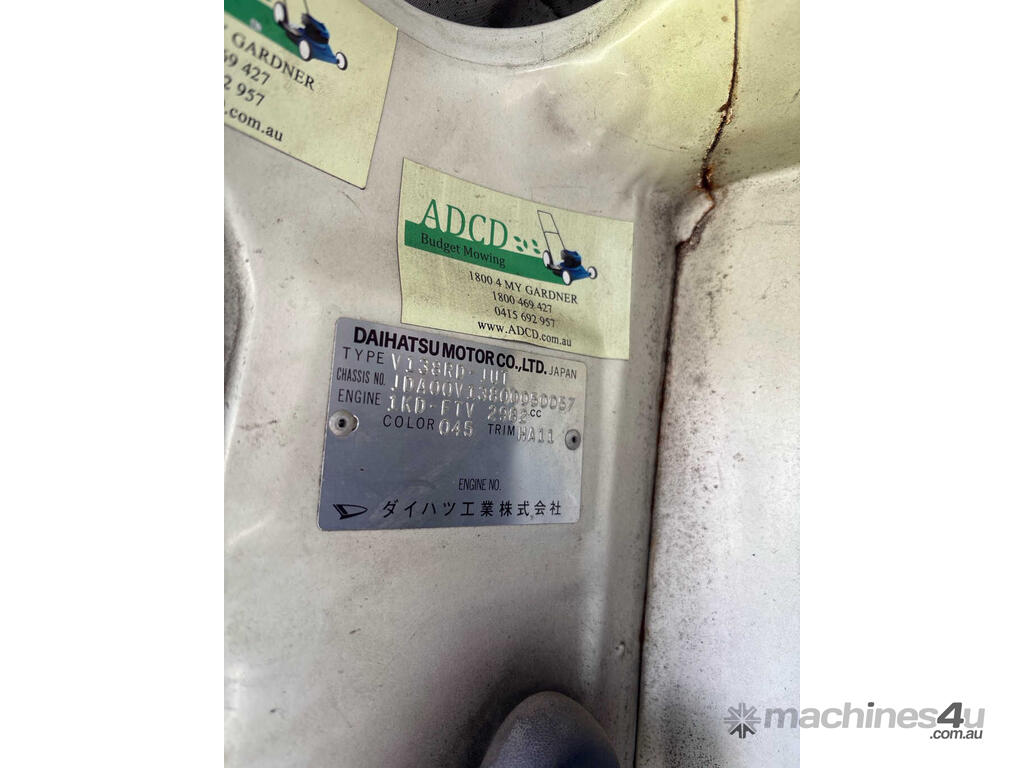 CP: 11/2004,Daihatsu,Delta,Manual,4 Cyl,Diesel,Odometer not visible,Hourmeter not visible,Colour: White,Rego. No: NP(1JQ9SH), Unregistered VIC,VIN: JDA00V7,Length: 4 m,GVM: 4495,Sold with No Plates,WOVR Status: WOVR N/A,Incident Type: Impact