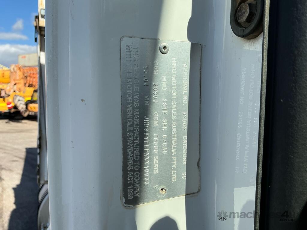 CP: 10/2004,Hino,700 Series,Tipper,Manual,Airbag ,E13C,6 Cyl,Diesel Turbo,18 Gears,651008 (Kms. Showing on Odometer),Hourmeter not visible,Colour: White,Rego. No: NP(1ITR995), Unregistered WA,VIN: JHDSS1ELPXXX10033,Key No: 557,Length: 8 m,GVM: 28300,GCM: 68000,Sold with No Plates,Key No: 557