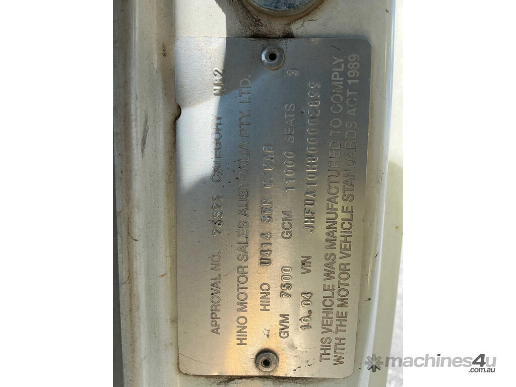 CP: 10/2004,Hino,U414,Tipper,Manual,6 Gears,411082 (Kms. Showing on Odometer),Hourmeter not visible,Colour: White,Rego. No: NP(AB27WG), Unregistered NSW,VIN: JHFUA10H,Length: 5.8 m,GVM: 7500,GCM: 11000,Sold with No Plates,WOVR Status: Repairable Write-Off,Incident Type: Impact