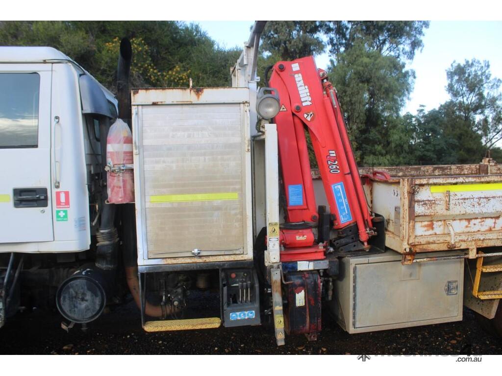 2004 Model, 194000KM Showing, 10400kg GVM, 3.5m Tipping Tray With Drop Side And 2 Way Tail Gate, Hiab Crane, Tool Boxes, 6 Speed Box.