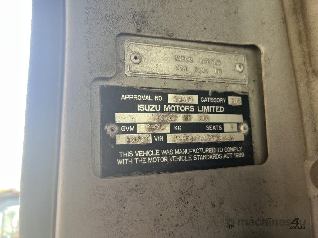CP: 10/2004,Isuzu,NPR 350,Garbage Compactor (Side Load),Automatic,Spring,Odometer not visible,Hourmeter not visible,Rego. No: NP(244TIQ), Unregistered QLD,VIN: JAANPR70L37104289,GVM: 4990,GCM: 7990,Sold with No Plates,WOVR Status: WOVR N/A,Incident Type: Not Applicable