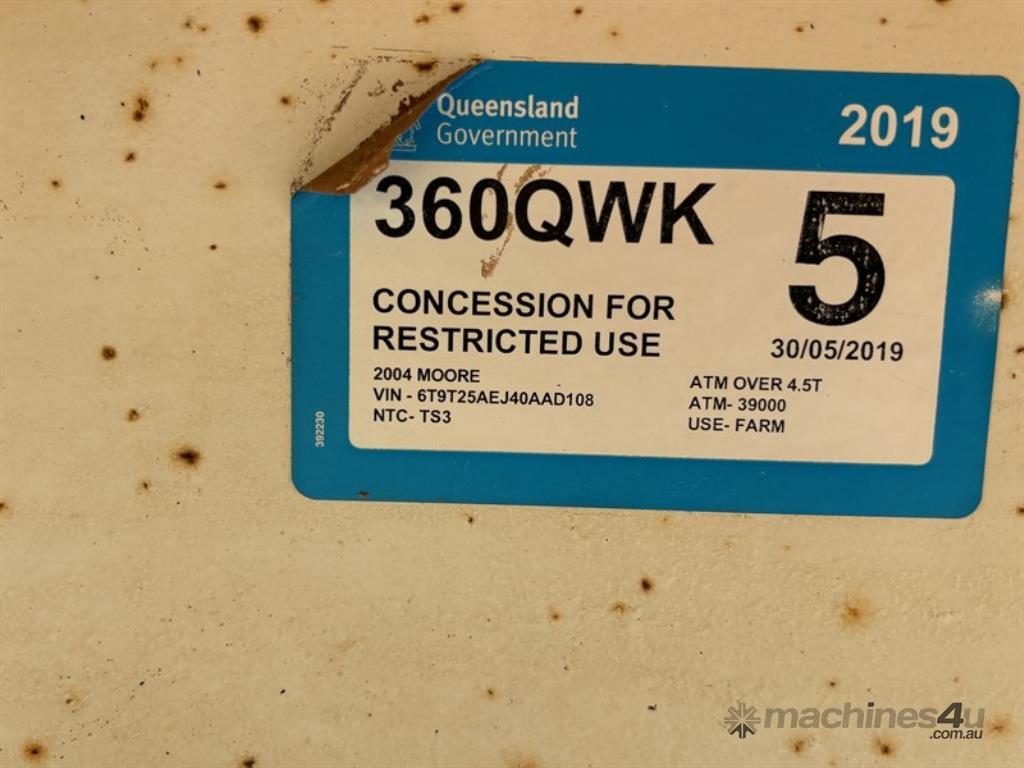 2004 MOORE CHASSIS TIPPER SLIDER TRAILER. VIN: 6T9T25AEJ40AAD108, OFFERED REGISTERED UNTIL 30/05/26. COI ST 42005766, VALID UNITL 15/08/2027. LOCATION: 60KMS NORTH/EAST OF CAPELLA, QLD 4723. INSPECTIONS & COLLECTIONS: MONDAY TO FRIDAY, 8AM TO 4PM. ENQUIRIES: MATT BEARD ON