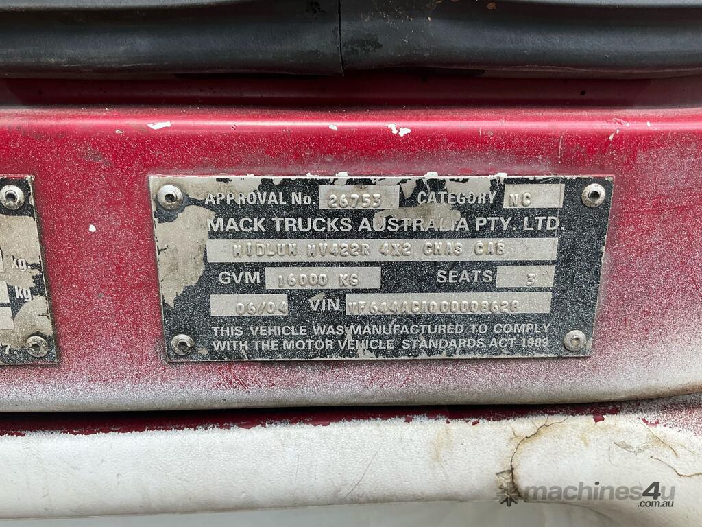 CP: 06/2004,Mack,Midlum,Crane Truck (Table Top),Manual,8 Gears,Odometer not visible,Hourmeter not visible,Rego. No: XP66JK NSW,VIN: VF644ACA,GVM: 16000,GCM: 19500,Sold with No Plates,WOVR Status: Statutory Write-Off,Incident Type: Fire