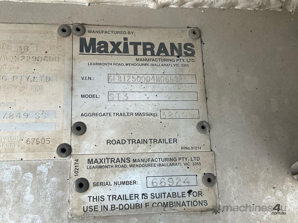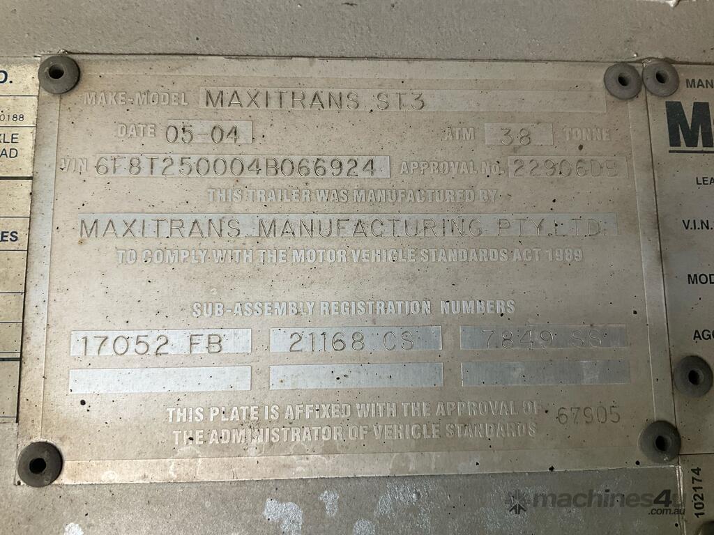 CP: 05/2004,Maxitrans,ST3,Tri Axle Drop Deck Curtainside B Trailer,556960 (Kms. Showing on Hubometer),Colour: White,Rego. No: NP(YV46CD), Unregistered,VIN: 6F8T250004B066924,Sold with No Plates