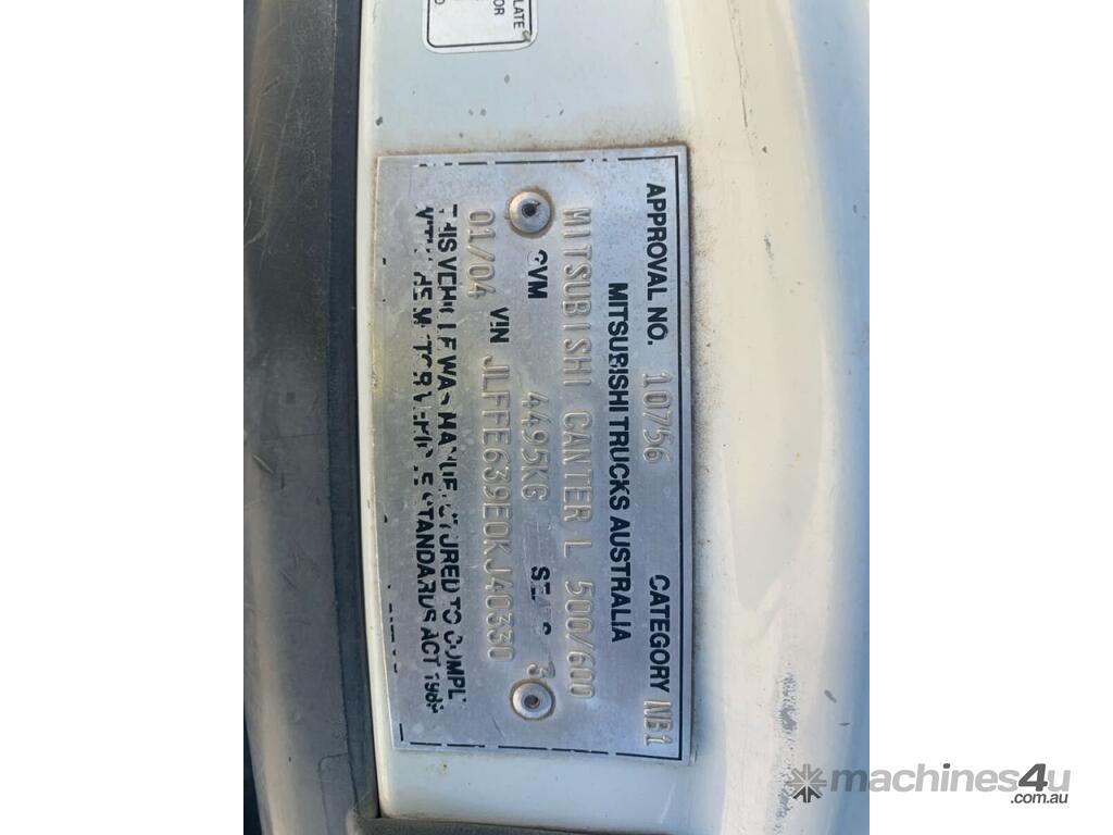 CP: 01/2004,Mitsubishi,Canter 500/600,Caged Tabletop,Manual,Spring Suspension,Diesel,2 Gears,279735 (Kms. Showing on Odometer),Hourmeter not visible,Unregistered,VIN: JLFFE639E0KJ40330,GVM: 4495,GCM: 7995,Sold with No Plates,WOVR Status: WOVR N/A,Incident Type: Impact