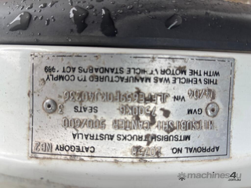 CP: 04/2004,Mitsubishi,Canter,Pantech,Manual,Spring ,4 Cyl,Diesel,5 Gears,388166 (Kms. Showing on Odometer),Hourmeter not visible,Colour: White,Unregistered,VIN: JLFFE659F0KJ40236,Length: 7.32 m,GVM: 7500,GCM: 11000,Sold with No Plates